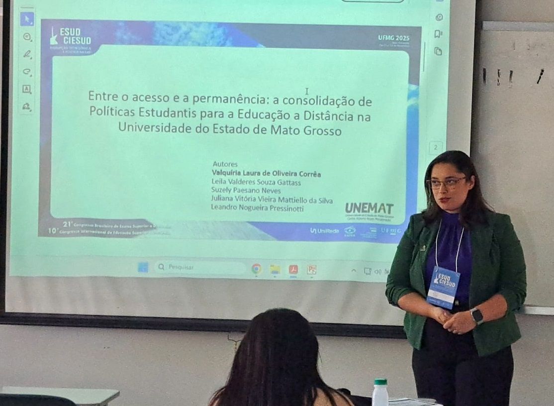 A Universidade do Estado de Mato Grosso (Unemat) marcou presença de destaque na agenda nacional da educação a distância. Entre os dias 11 e 14 de novembro, a Instituição foi representada no 21º Congresso de Ensino Superior à Distância (Esud) e no 10º Congresso Internacional de Educação Superior a Distância (Ciesud), realizados na Universidade Federal de Minas Gerais (UFMG), em Belo Horizonte.